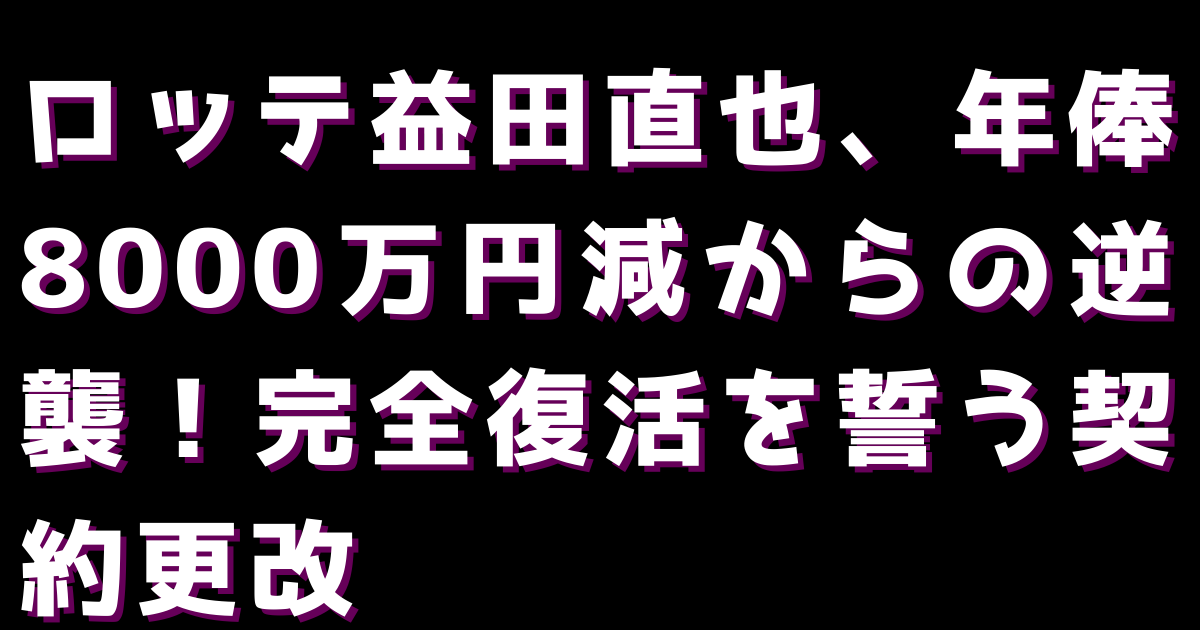 ロッテの守護神・益田直也投手(36)が、2024年12月24日に千葉市内の球団事務所で契約更改交渉を行い、今季の年俸2億円から8000万円減の1億2000万円(推定)でサインしました。