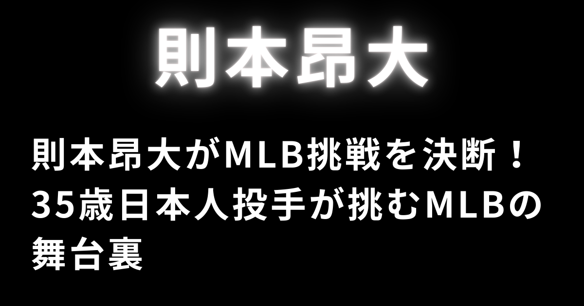 2024年オフ、長年楽天イーグルスのエースとして活躍してきた則本昂大投手が、海外FA権を行使し、アメリカ・メジャーリーグへの挑戦を表明しました。しかも、彼に提示されたのはマイナー契約ではなく、「メジャー契約」。これは日本人投手にとって非常に価値のある提案であり、野球ファンの間で大きな注目を集めています。